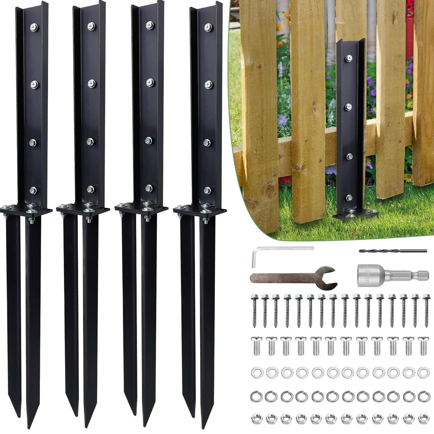 頑丈なスチール製の柵柱、柵柱アンカー、傾いた/破損した木製柵用の地面釘