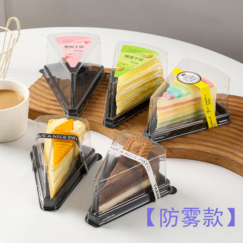 厚手の三角ムース箱透明防霧ドリアンマンゴー千層包装箱虹カットケーキ箱