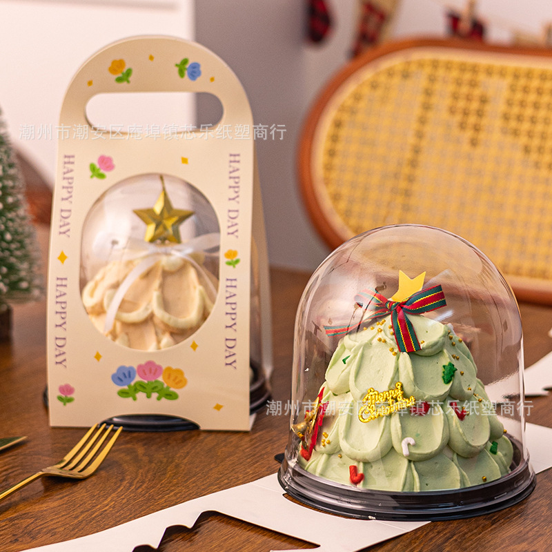 4インチ円形ケーキボックスクリスマスクリスマスツリーケーキボックス透明半円ケーキボックス洋菓子ムース