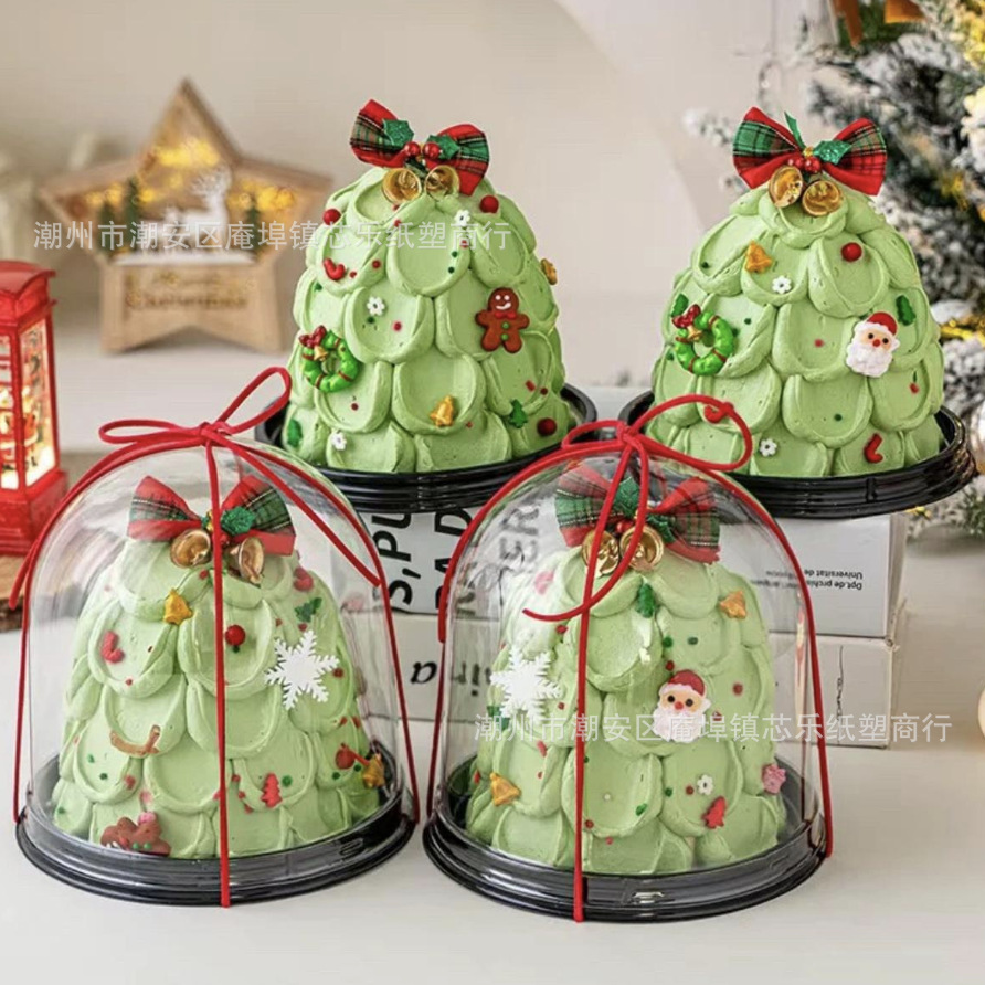 4インチ円形ケーキボックスクリスマスクリスマスツリーケーキボックス透明半円ケーキボックス洋菓子ムース