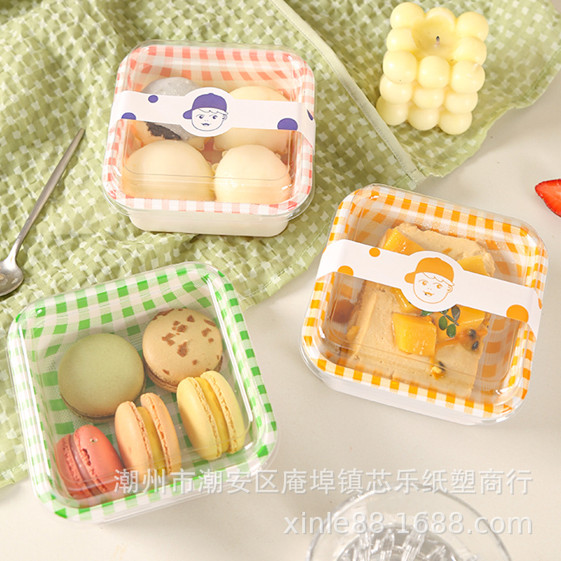 日本式格子縞弁当箱ティラミス箱千層手描きケーキ箱マカロンデザート包装箱