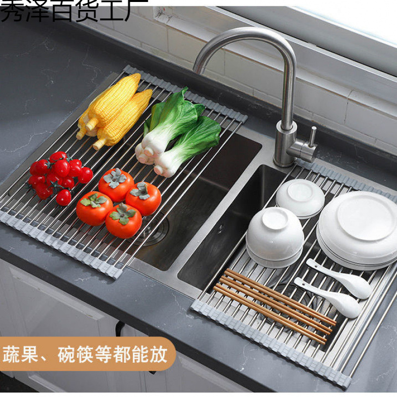 食器水切りラック、食器、ステンレス製食器洗い桶、水切りかご、キッチン多機能ローラーブラインド折りたたみ