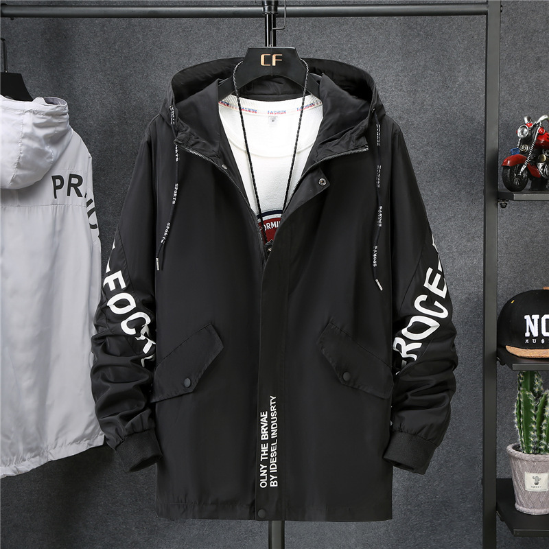 男性コート春秋モデル韓国版トレンド格好いい大サイズの帽子ジャケット潮青年上着春装加肥592