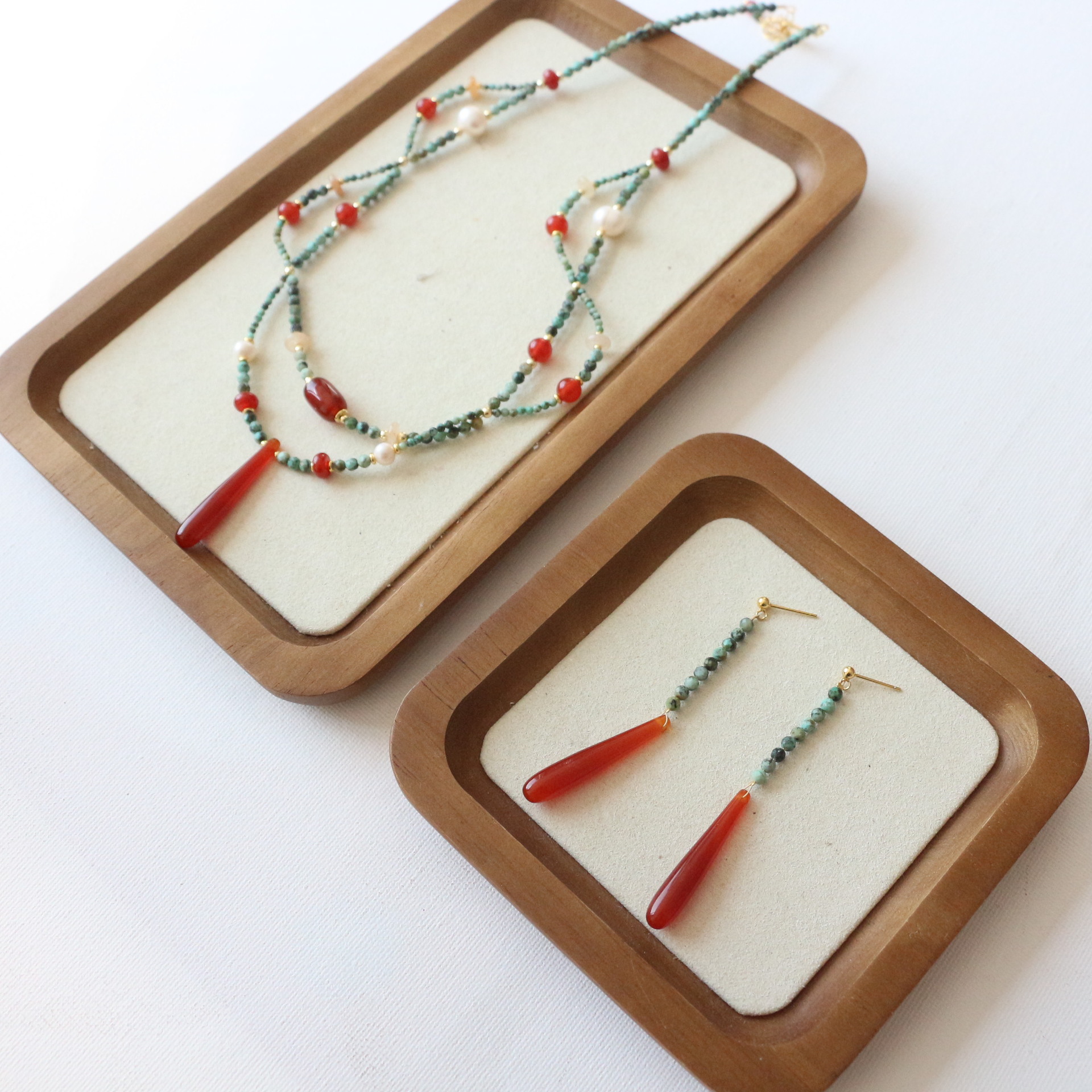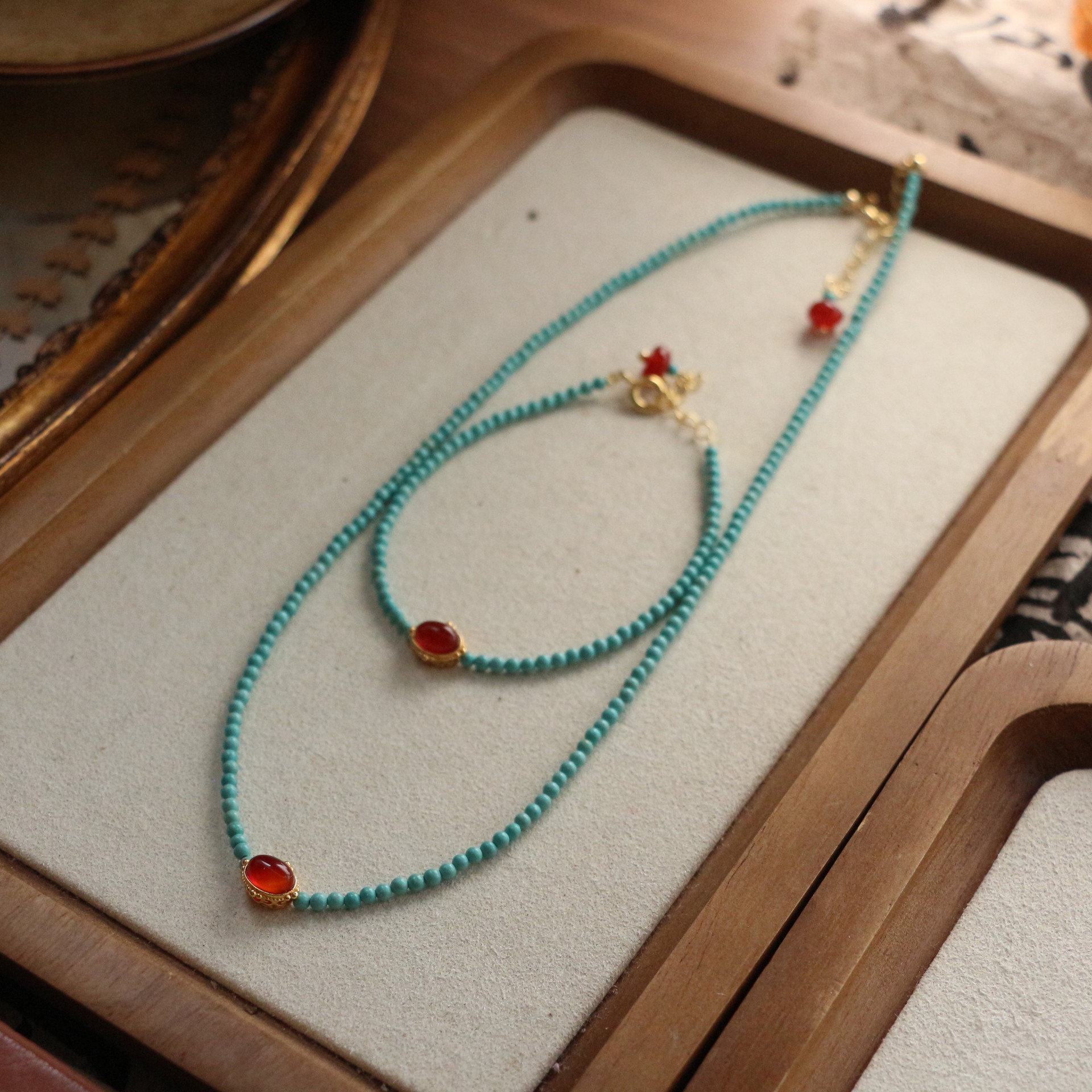 新中国式天然緑松石数珠紅瑪瑙ネックレス女性ブレスレット鎖骨チェーン