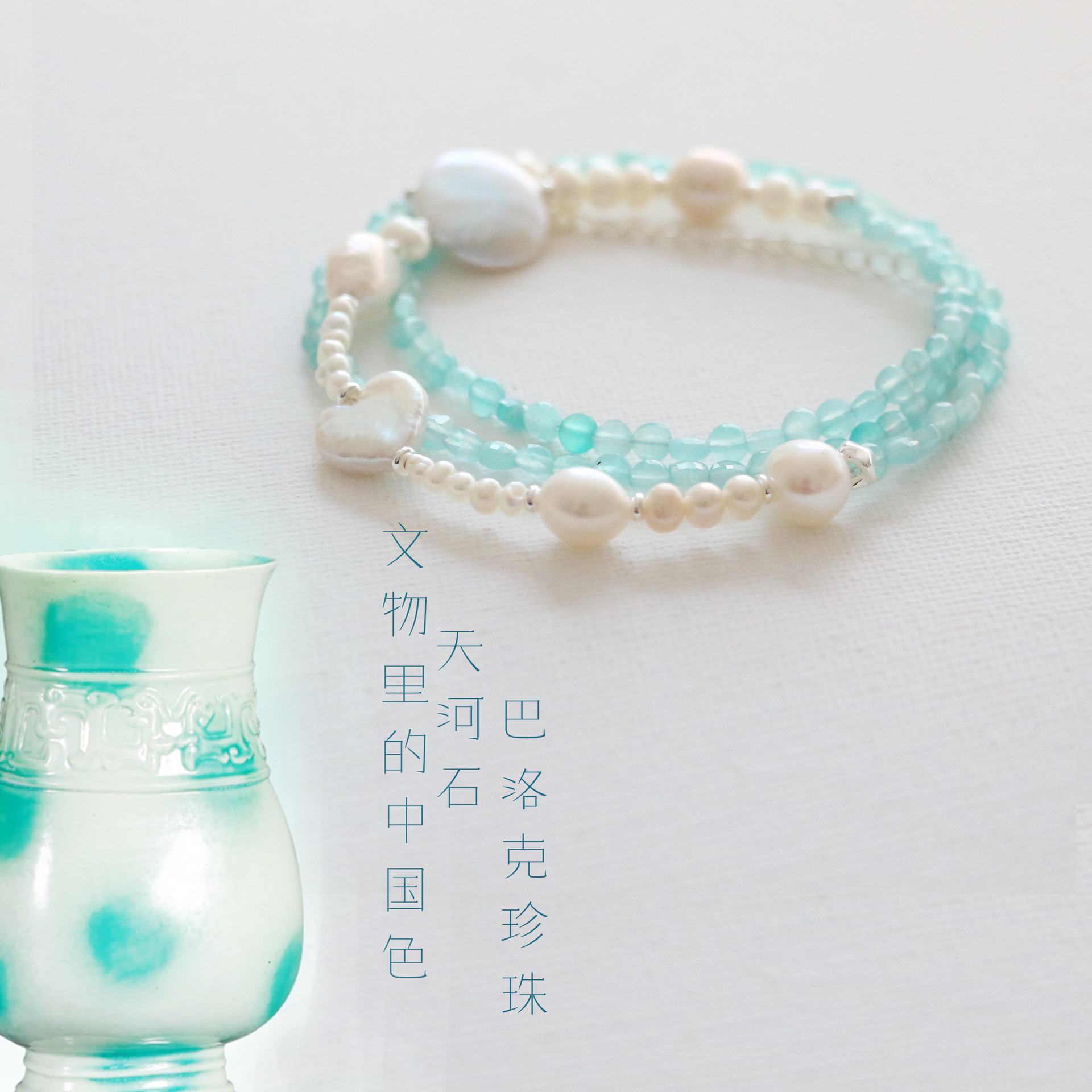 新中国式軽豪華風天河石ビーズネックレスバロック淡水真珠鎖女性高級感アクセサリー