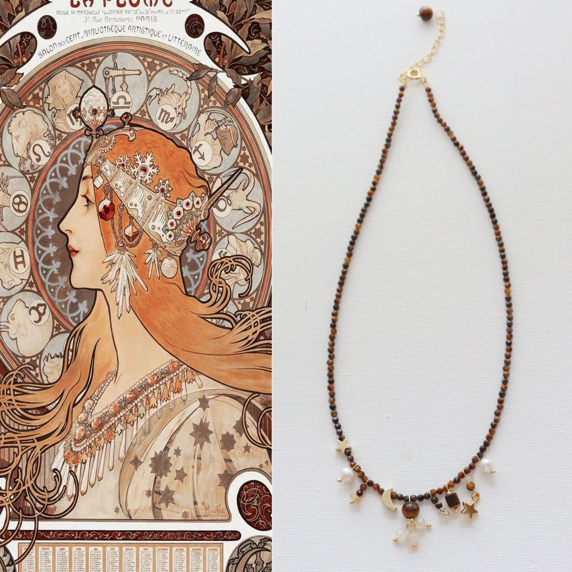 美ラード系キャラメルレトロ天然石手作りビーズネックレス星秋冬カレーネックレス卸売り