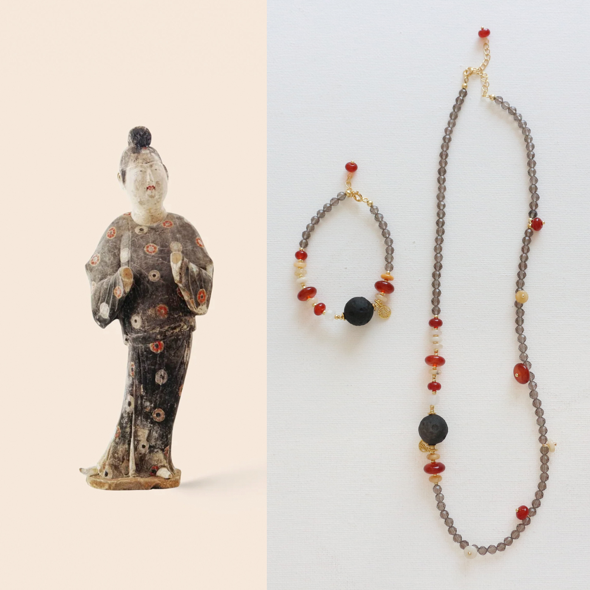 禅意の色合わせ天然石ビーズ二重重ねてブレスレットをつけます。