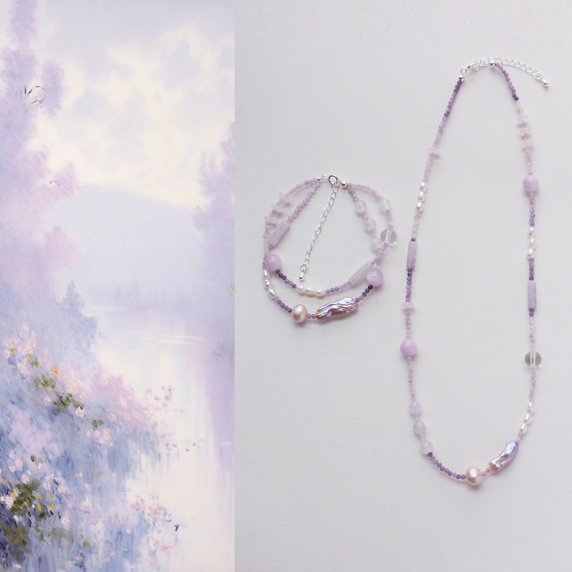 オリジナルデザイン パープルクンツァイト ライラック バロック ピンクパープルパール スイートライト ピンクパープル チョーカー ショートネックレス