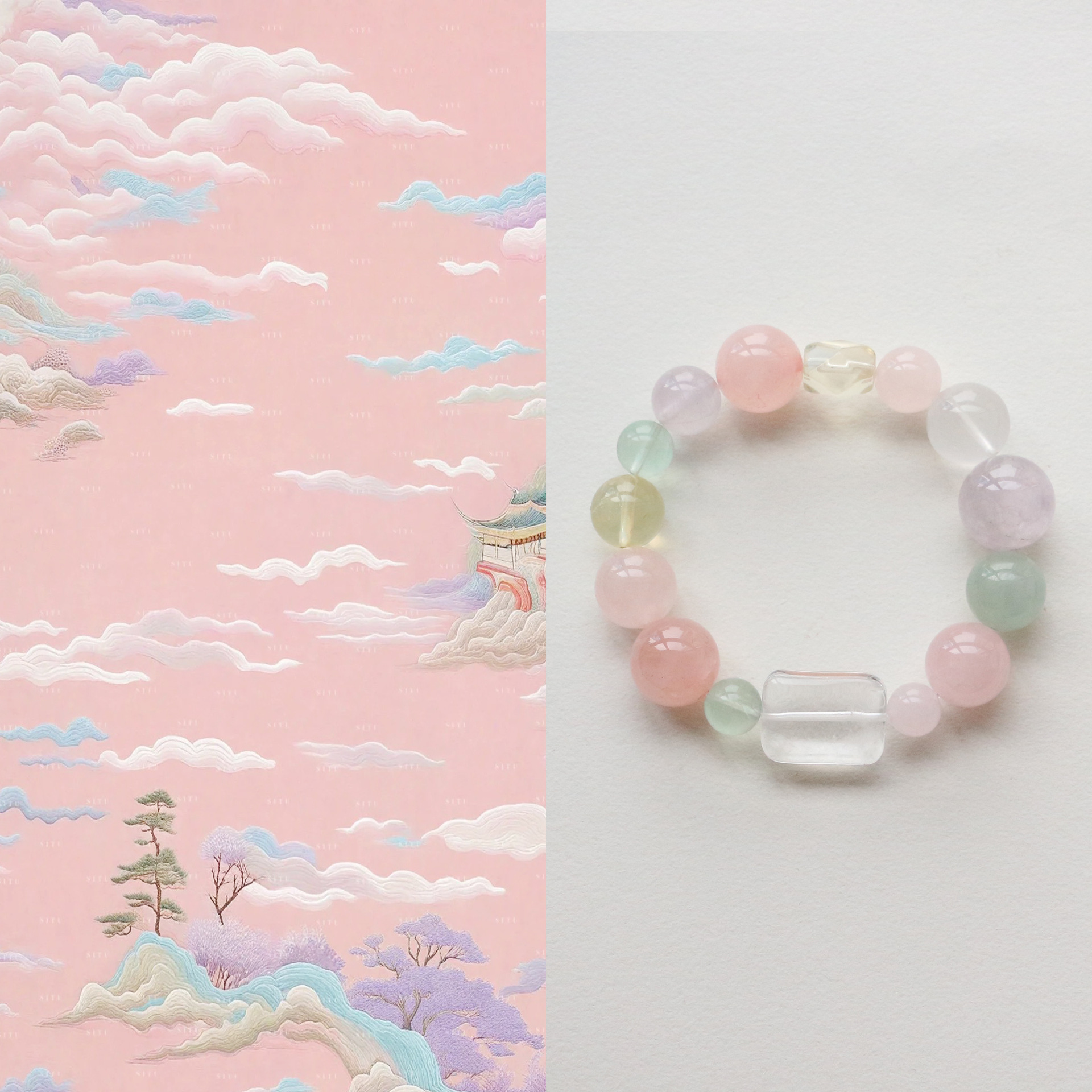 優しいカラフルなマルチストーンクリスタルブレスレットオリジナルデザインミルクホワイトクリスタルノーブランド天然蛍石レモンクリスタル