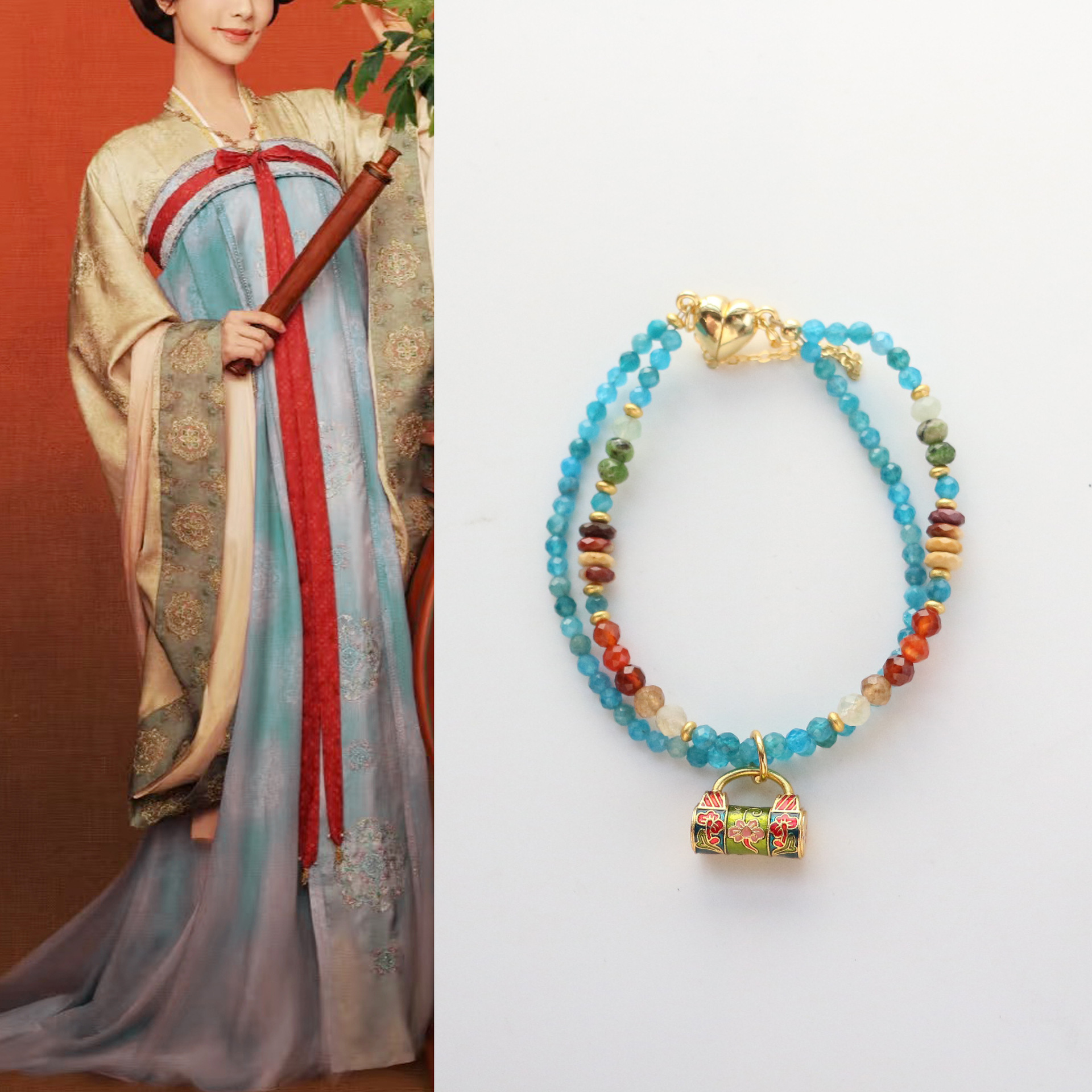 ブルーリングレー天然石多宝オリジナルデザインエナメルカラー小さな金ロックブレスレットレトロロイヤルスタイルカラー手串