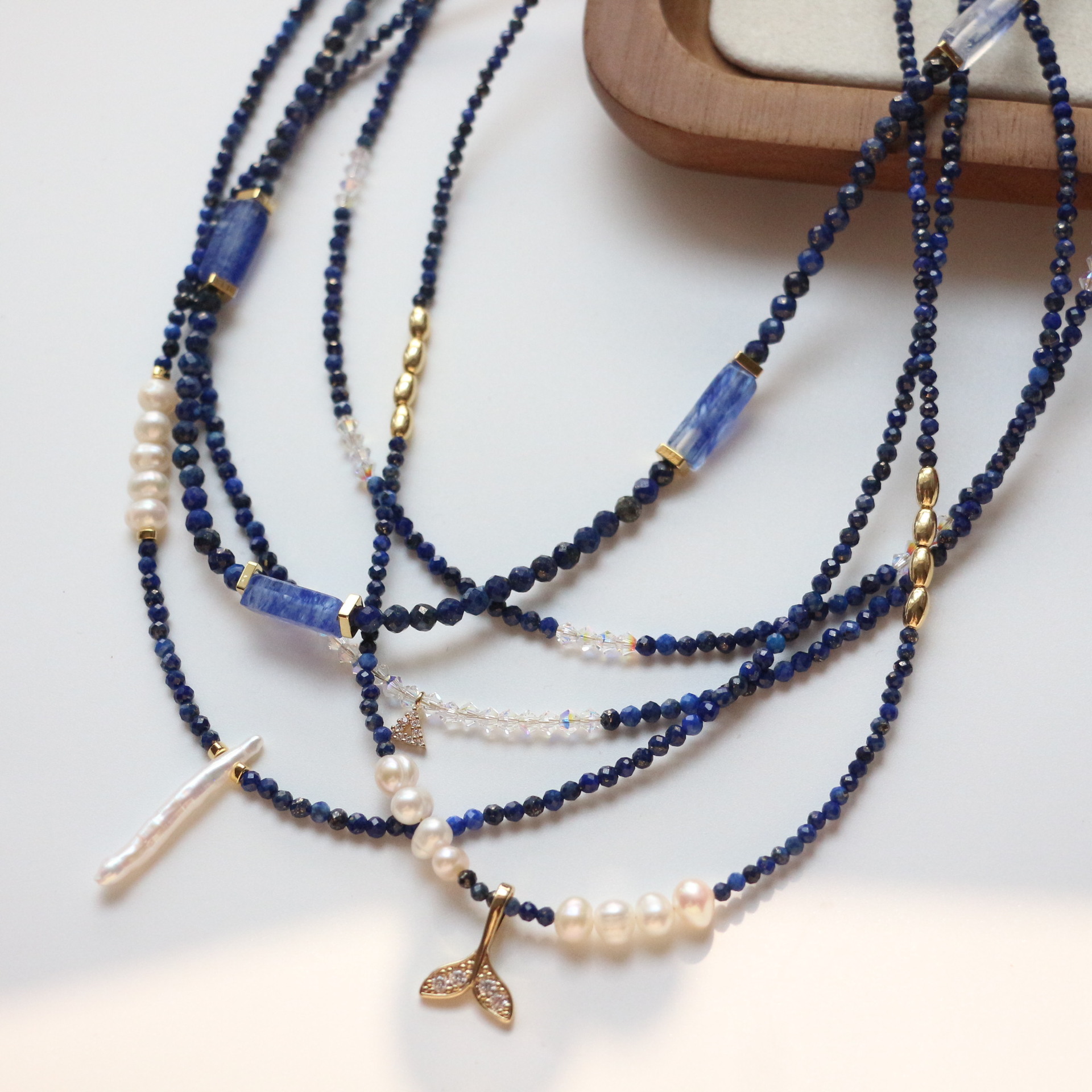 オリジナル新中国式小衆軽豪華レトロ天然石天然ラピスラズリビーズネックレス女性鎖