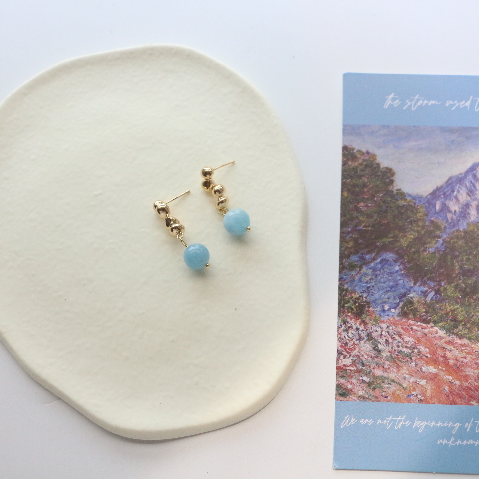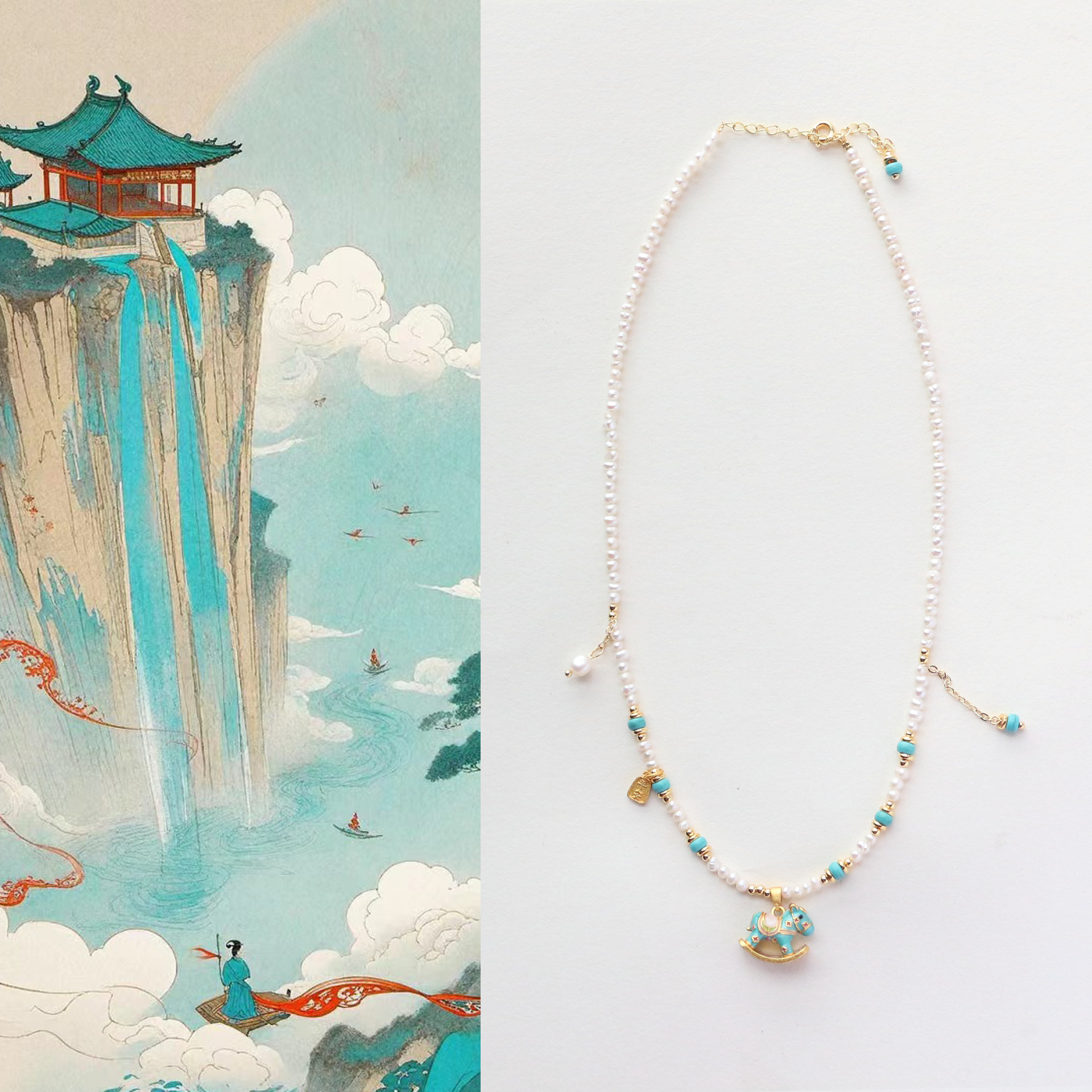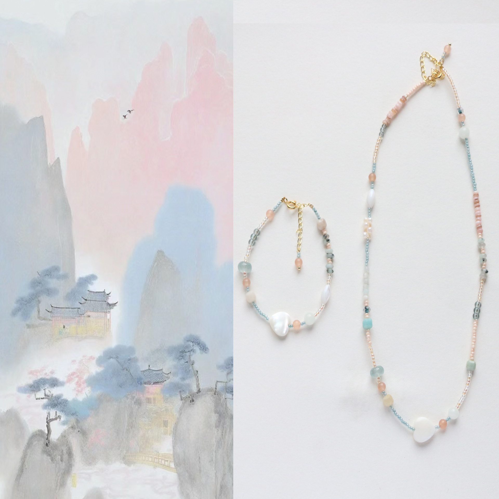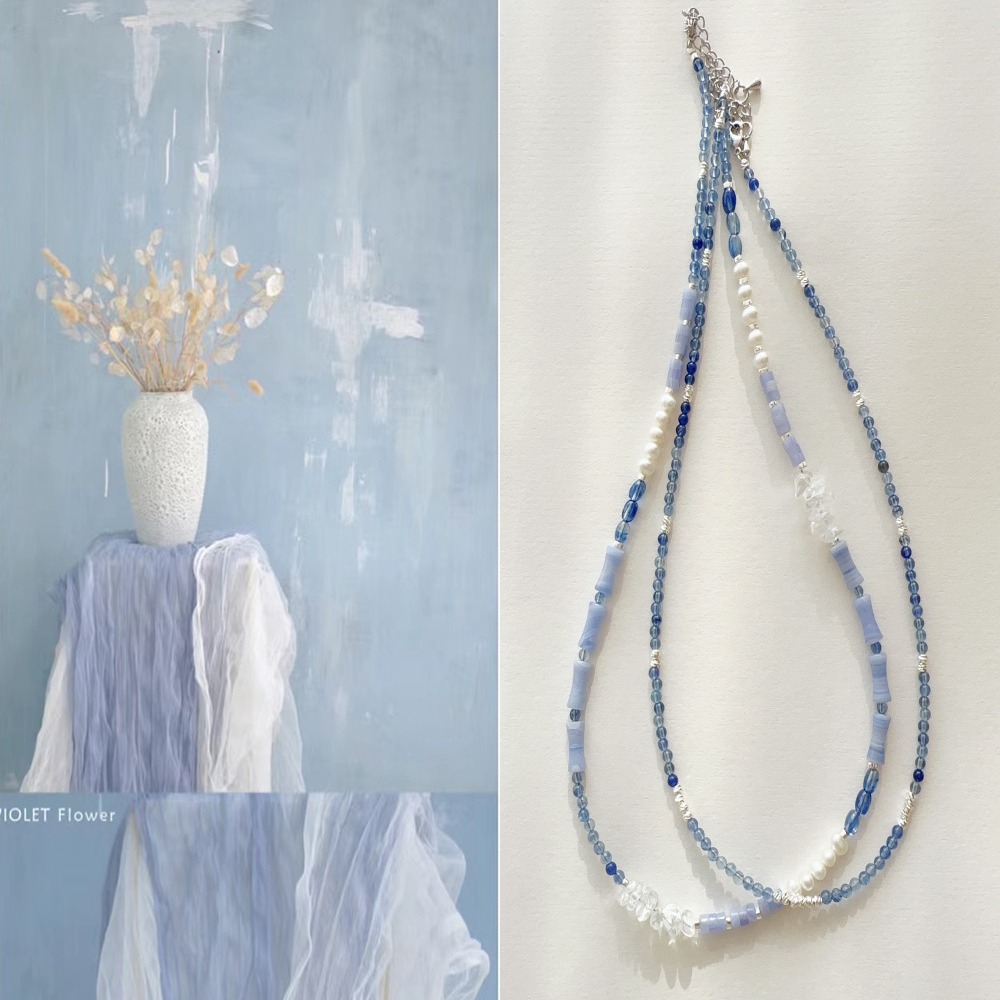 水色天然石ビーズネックレス手作オリジナル小衆アクセサリー水墨国風首鎖鎖鎖