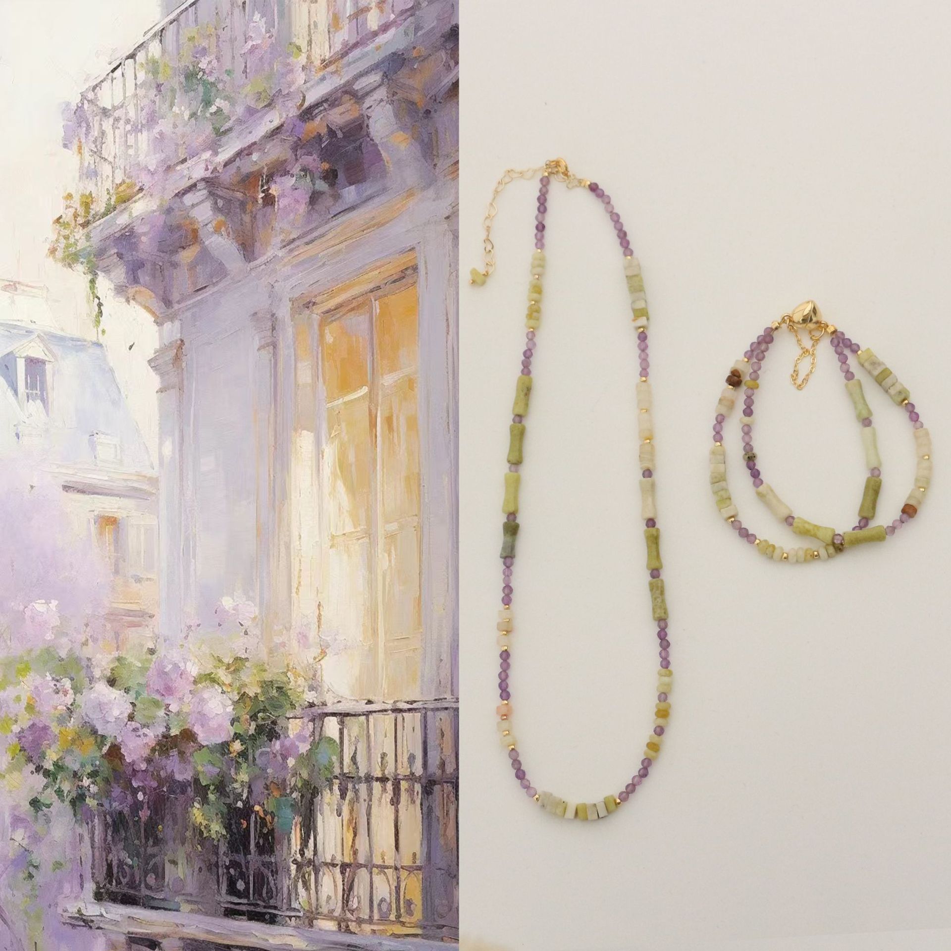 空中花園小衆軽豪華レトロ天然石天然紫水晶ビーズネックレス女性鎖鎖首鎖プレゼント
