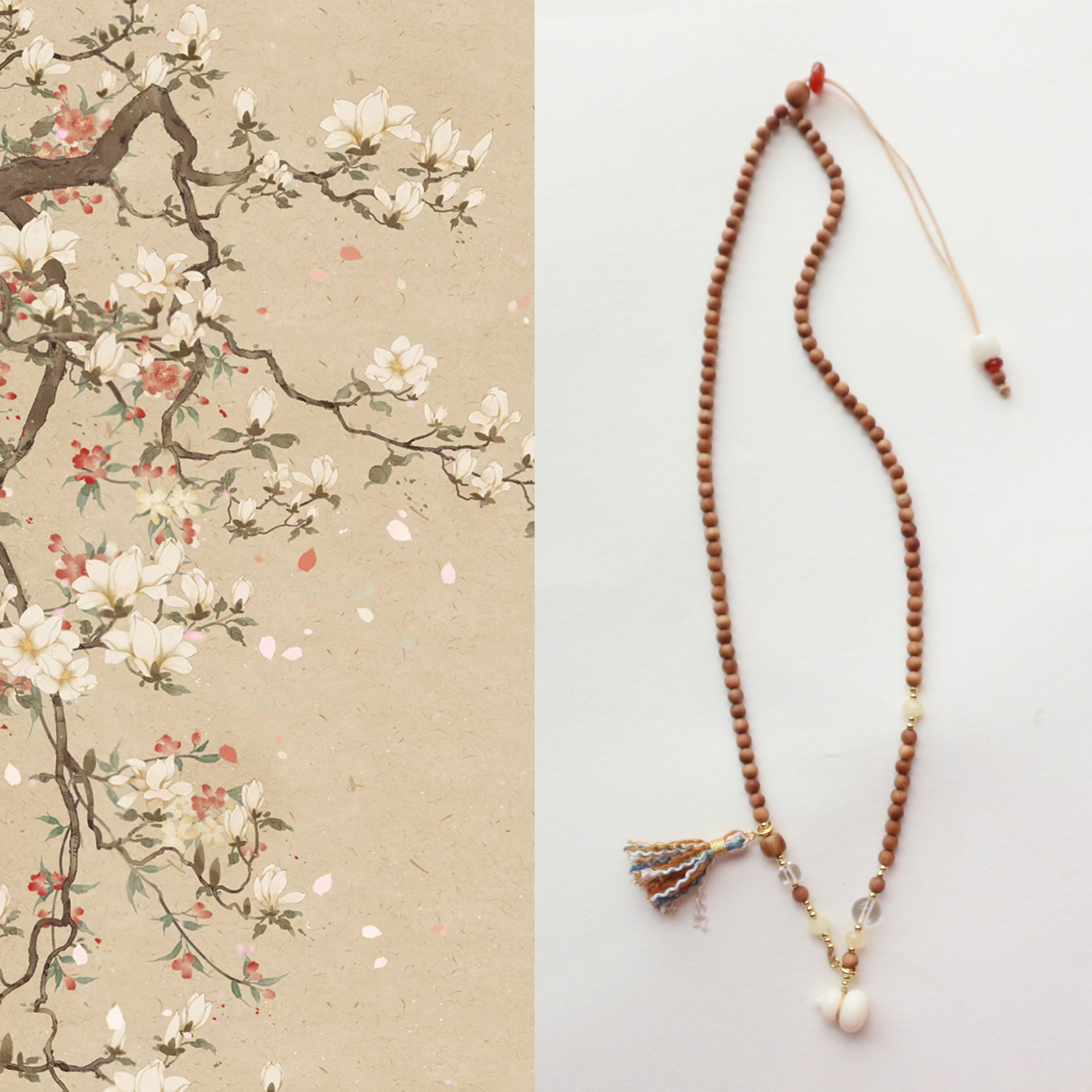 新しい中国風のネックレスニッチターコイズグリーンシングルビーズピンククリスタルロング中国風チャイナドレスネックレス