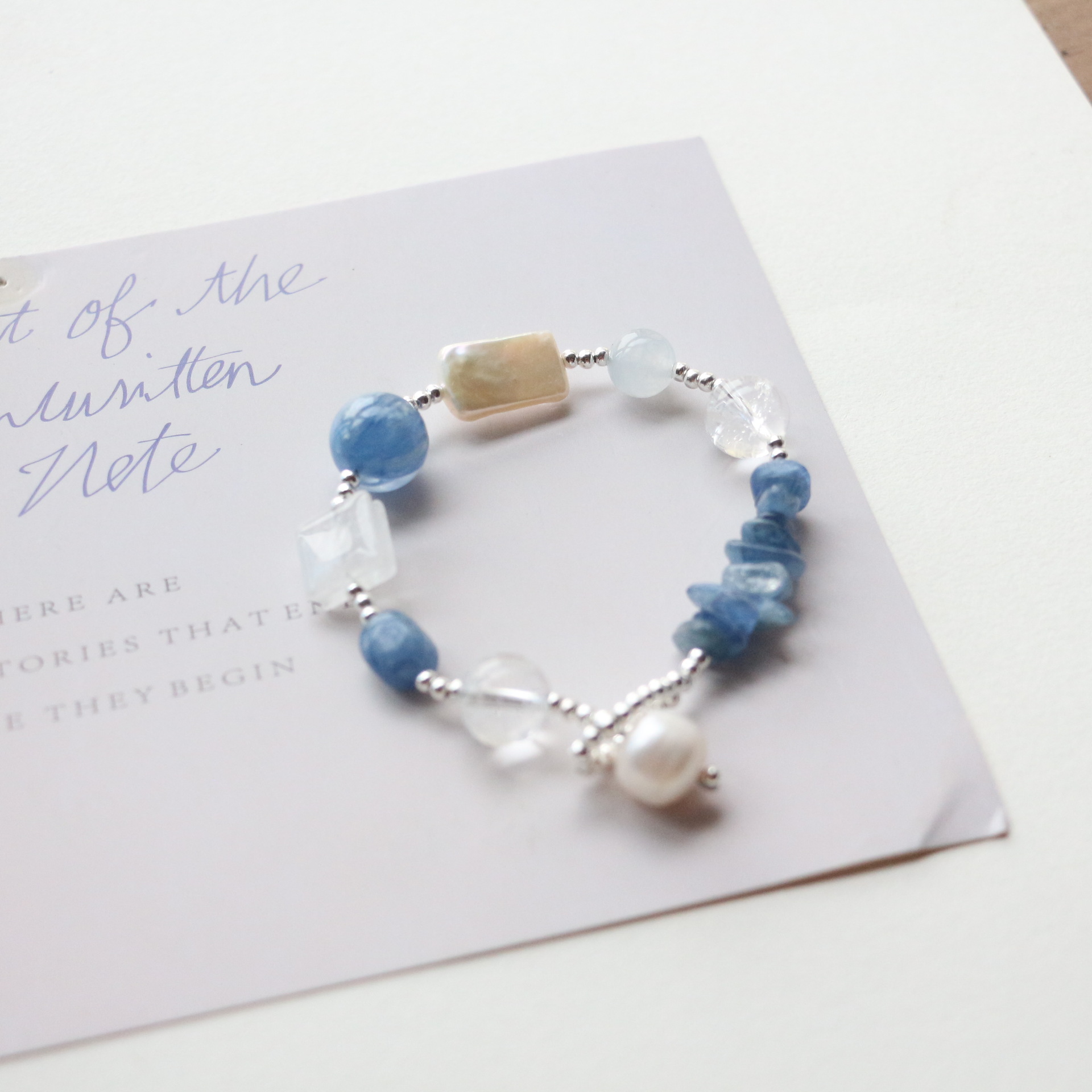 ナチュラルホワイトクリスタルアズライトブレスレットクリアホワイトクリスタルビーズブレスレット