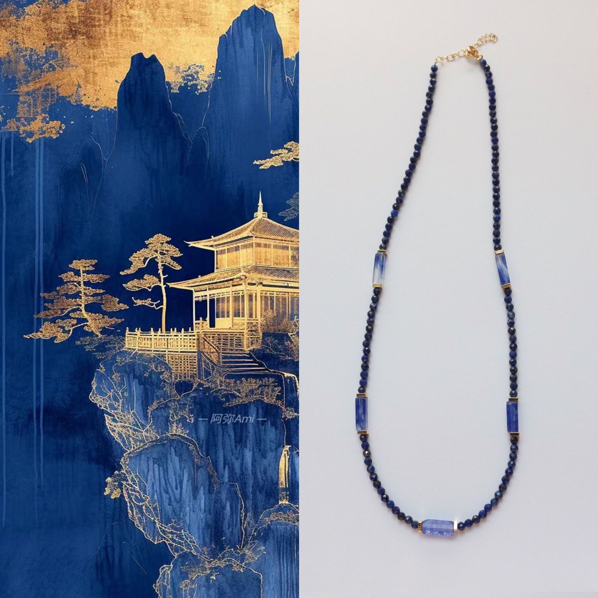 天然石ネックレス鎖骨鎖青金石国風元素ショートネックレス個性創意デザインビーズネックレス