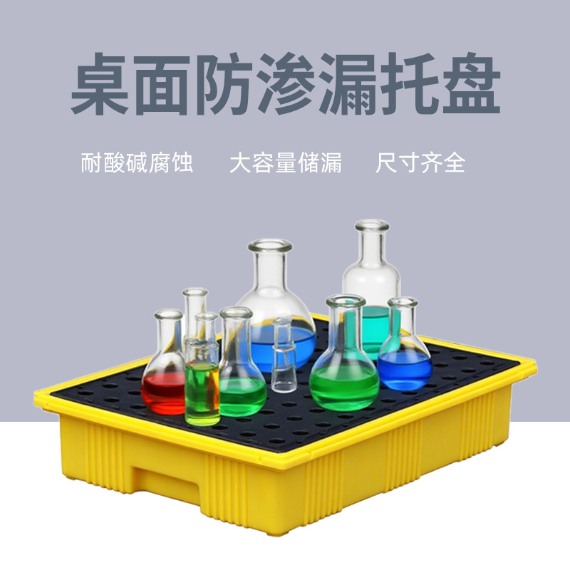 実験室用デスクトップ漏れ防止トレイ、単一または二つの容器用危険廃棄物漏れ防止プラットフォーム、化学薬品・オイルバレル用漏れ防止パレット