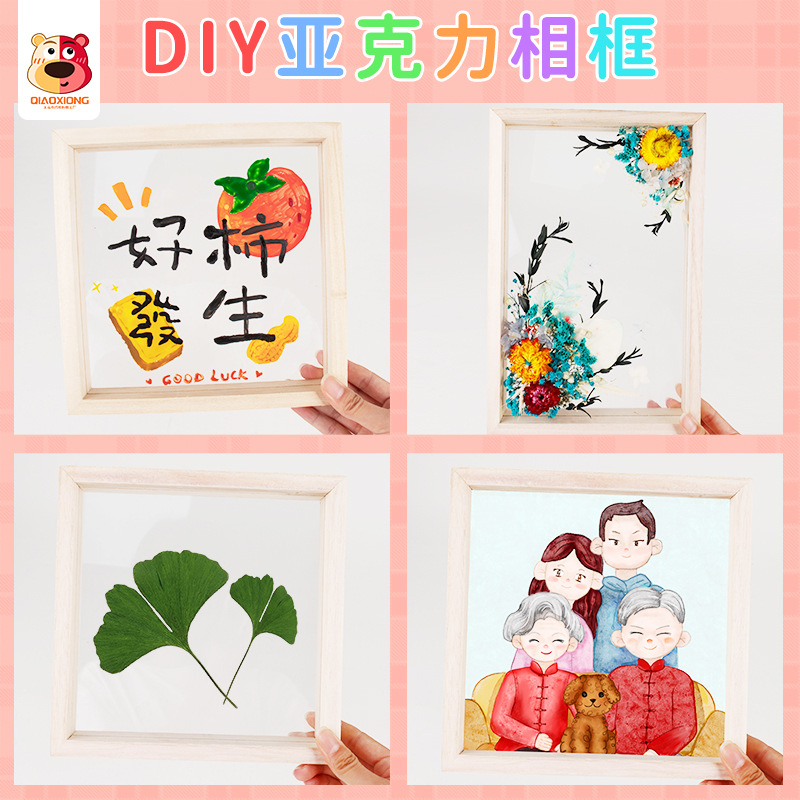 幼稚園児手作りdiy絵画実木アクリルガラスフォトフレーム創造落書き手描き美術額縁