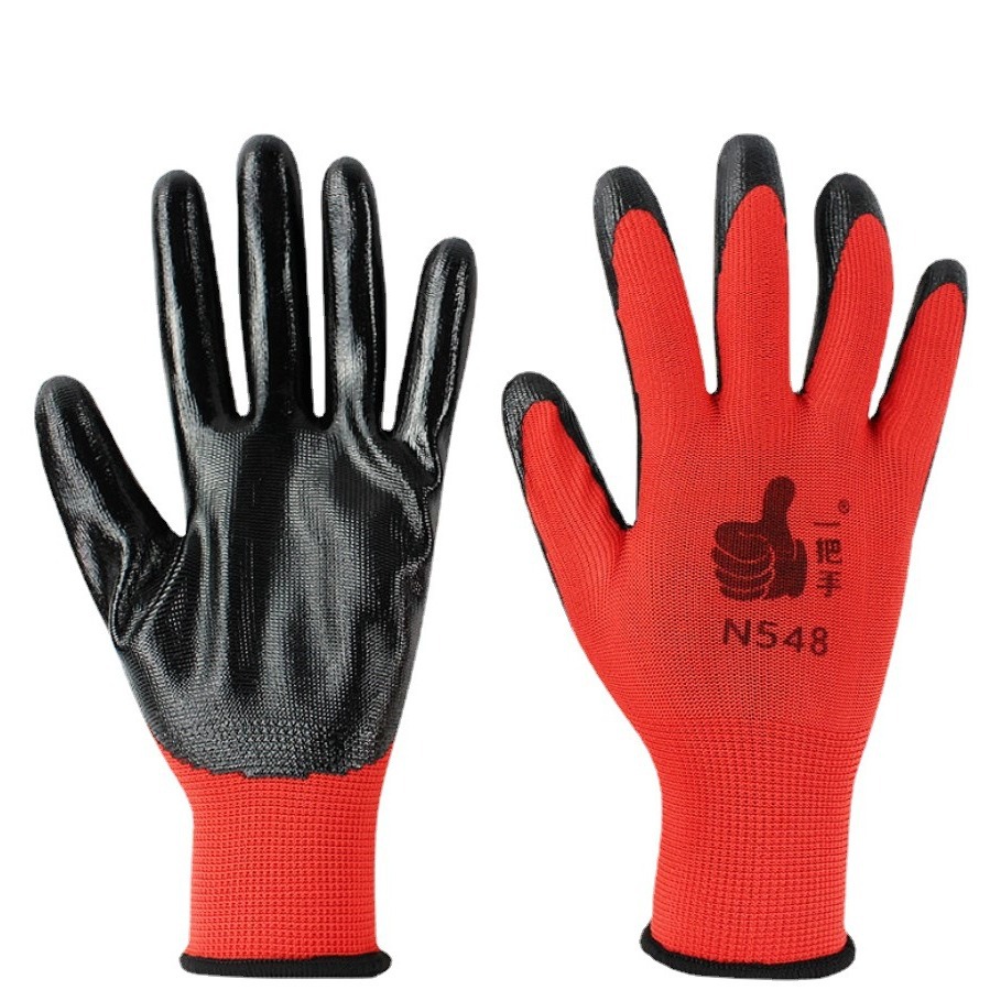 卸売り登昇一手n548丁晴浸ゴム手袋耐油赤糸黒手袋建築労働保護手袋
