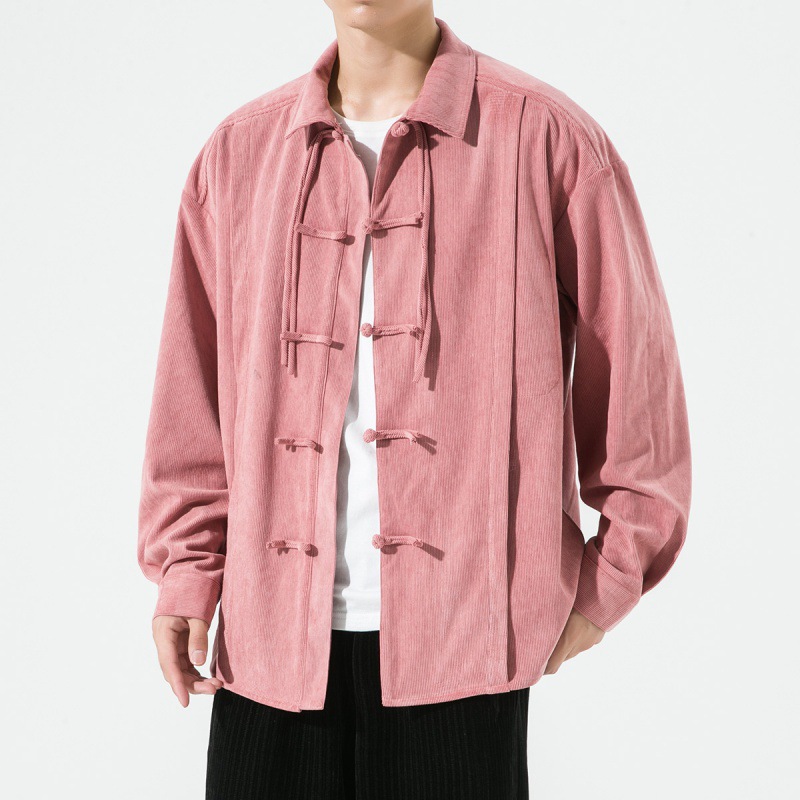 2022秋冬新型中国風男性レトロ盤ボタン純色長袖シャツ日系ゆるい大きいサイズシャツ男