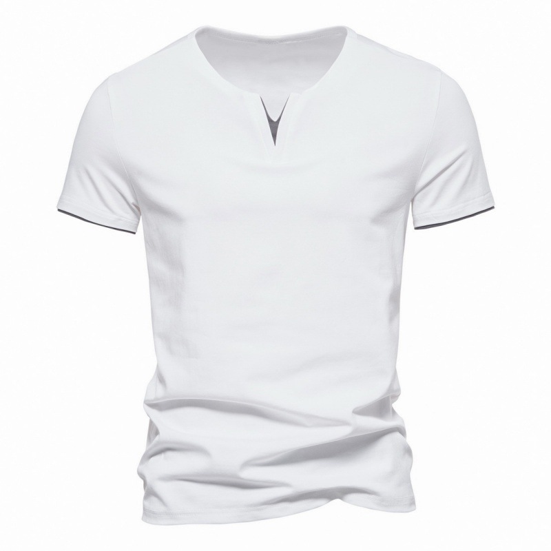 2023外国貿易クロスボーダー新型夏男性偽2枚vネックtシャツ半袖綿質純色tシャツスポーツ上着