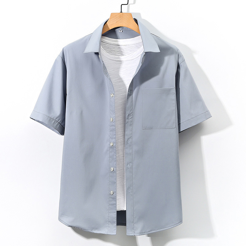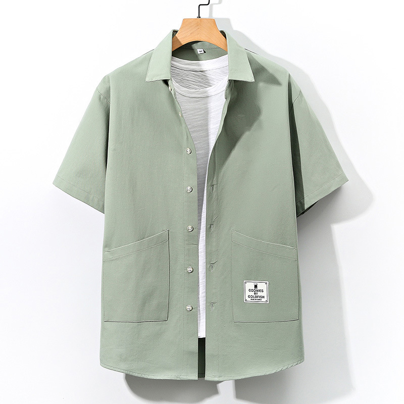 2023夏の韓国版綿のファッションの大きいサイズの工装の半袖のシャツの青少年のゆったりした純色のカジュアルなシャツ