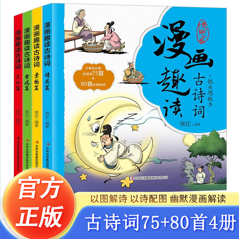 漫画の趣味は古詩語の全4冊の小学生を読んで必ず古詩語の75 80首の中国古詩語の朗読鑑を暗記します。