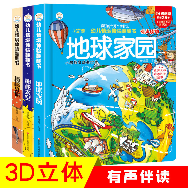 幼児の境地の体験は本をめくって全3冊の児童の啓蒙の認知の立体本のおもちゃの本の神秘の宇宙の絵本をひっくり返します。