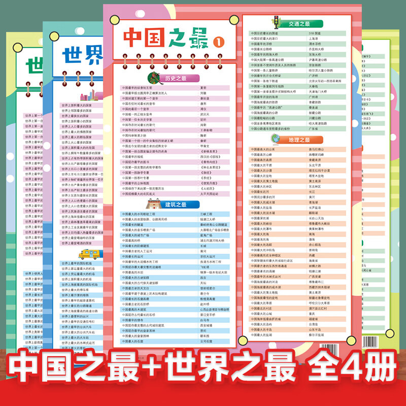 世界の和中国の掛け図の全セットの4枚の子供の知識点の掛け図の交通輸送の建築の天文