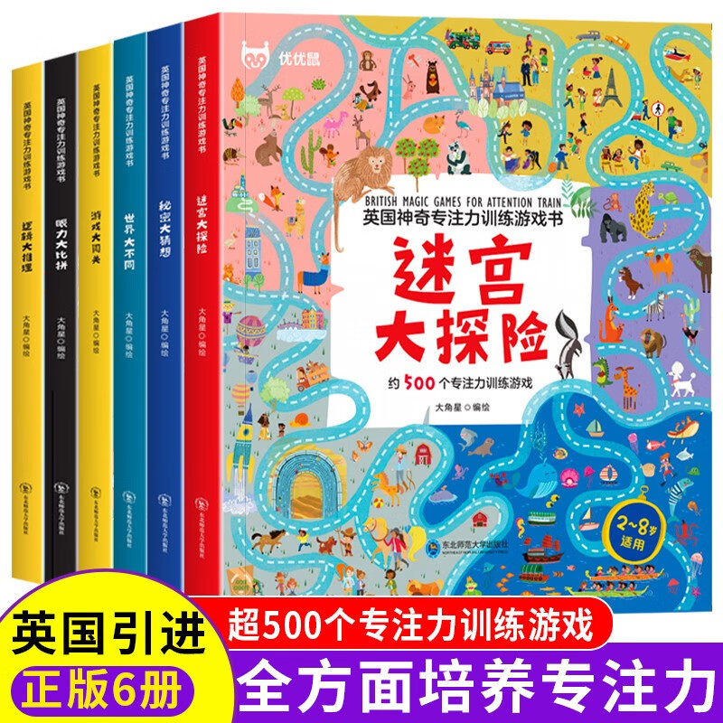 イギリスの不思議な子供の集中力はゲームの本の絵本の3-6-9歳の全6冊の幼児の赤ちゃんを訓練して違いを探します。