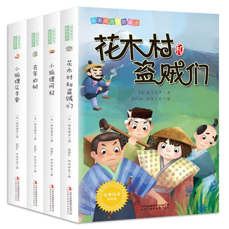 新美南吉の美しいおとぎ話の花の木の村と泥棒達のキツネは手袋を買って去年の木の経典を買います。