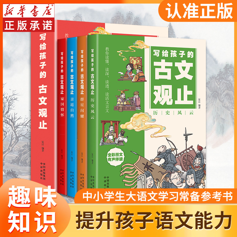 【全4巻】子供向けの古文集、フルカラーのイラストと音声付き、学生版、コミック版、緑