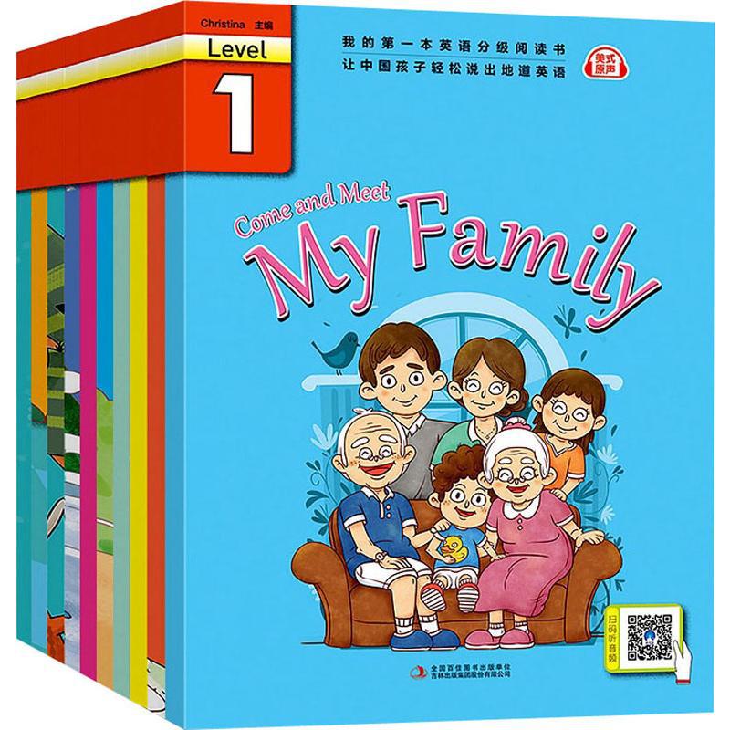 初めての英語の段階別読み物、全10巻の絵本、幼児教育、0~8歳、アメリカ式音声英語