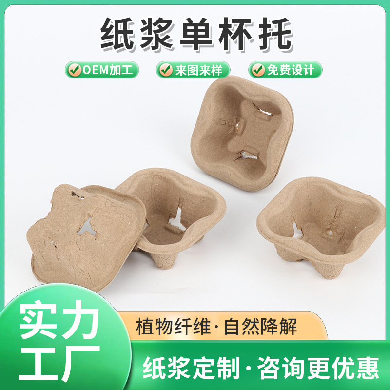 工場卸売り分解性パルプ単杯トレイパルプ成形販売ミルクティーコーヒー単杯トレイ段ボールトレイ