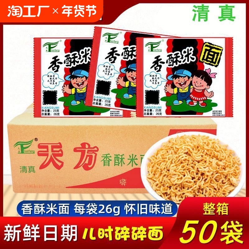 天方香ショートニングインスタントラーメン26g * 50袋のフルドライ麺子供時代のレトロな間食清真砕麺