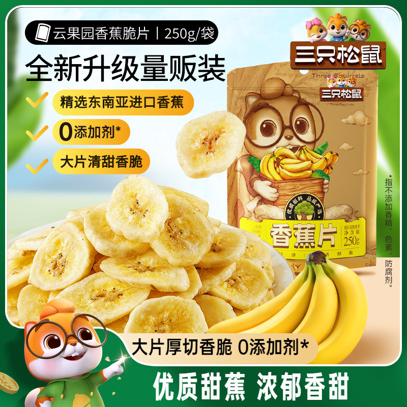 【Three Squirrels_バナナチップス 250g】輸入バナナチップス、ドライフルーツスナック専門