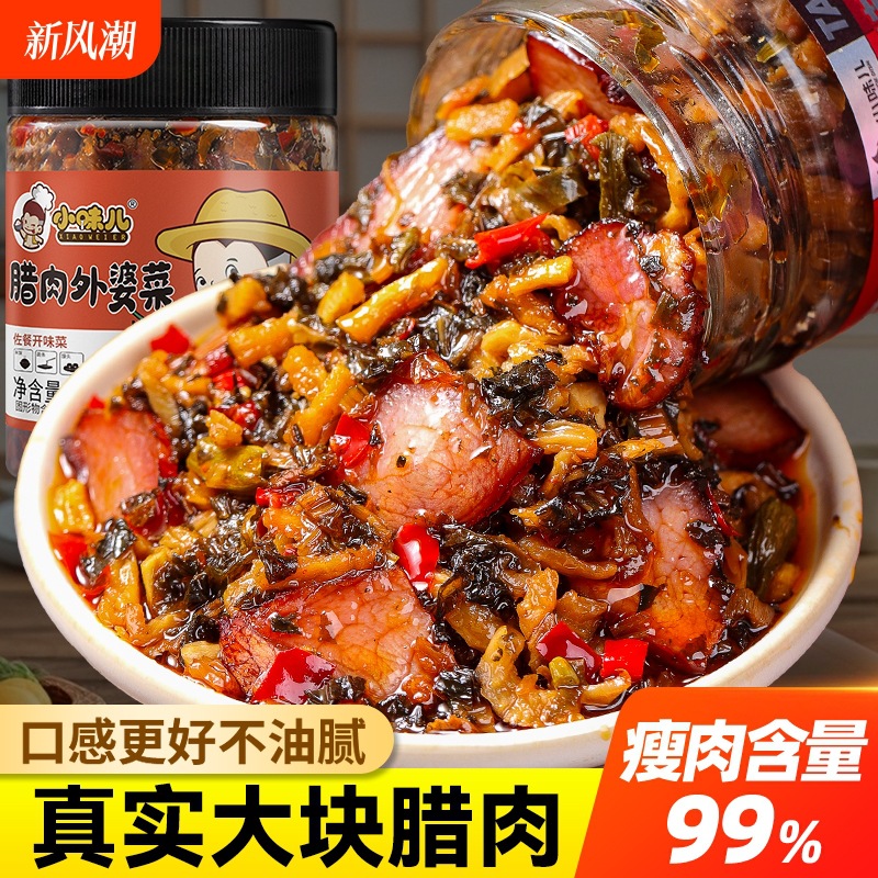 スリムベーコンおばあちゃんの料理、本格的な自家製農場湖南名物スパイシーな前菜漬け、瓶詰め大根