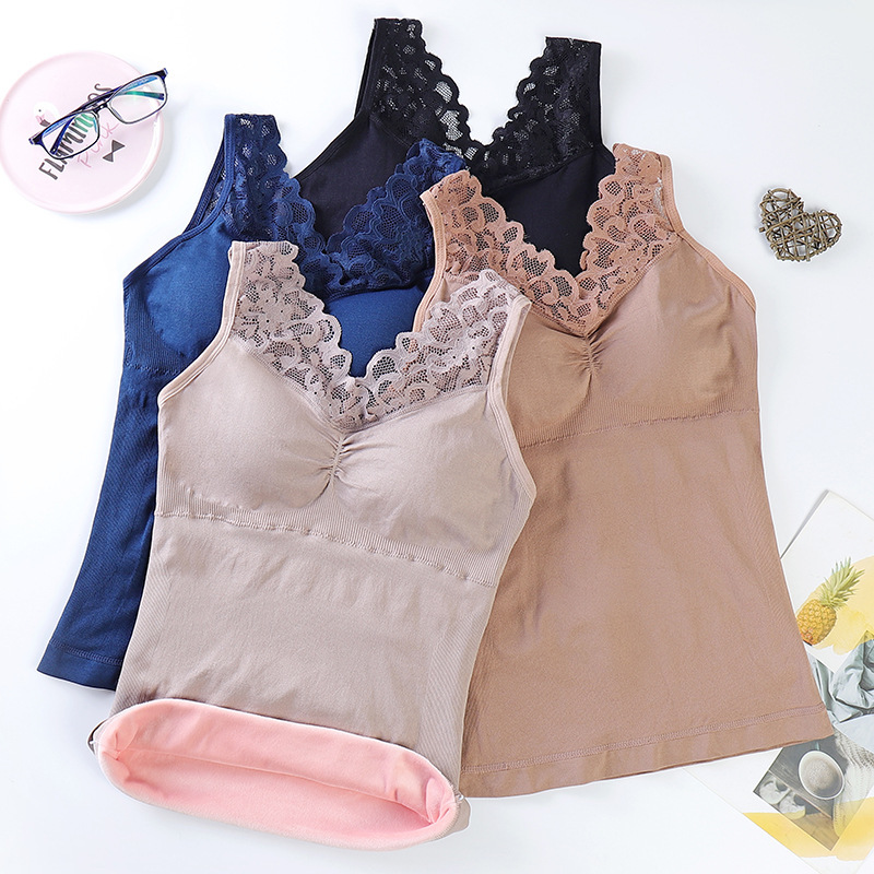 保温ベストの女性は、防寒レースの肩ベルトを身につけて、ベルベットの下着を厚くします。