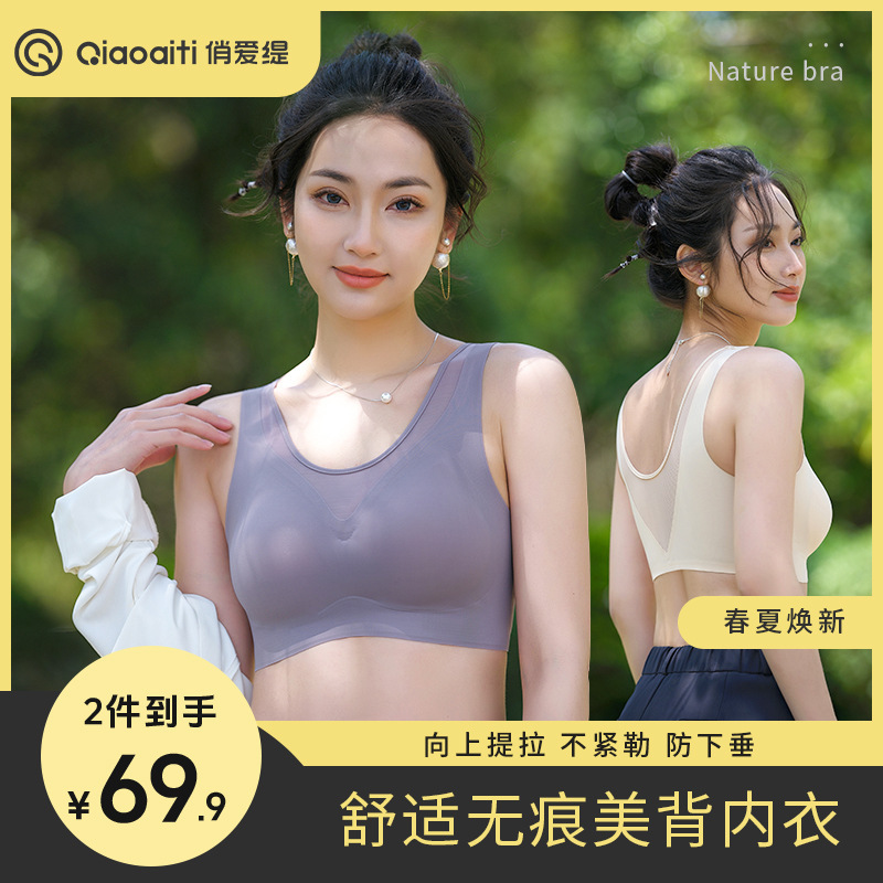Qiaoaiti 夏シームレスバックビューティー下着女性用ノンワイヤープッシュアップ胸通気性大きいサイズスポーツブラ薄型