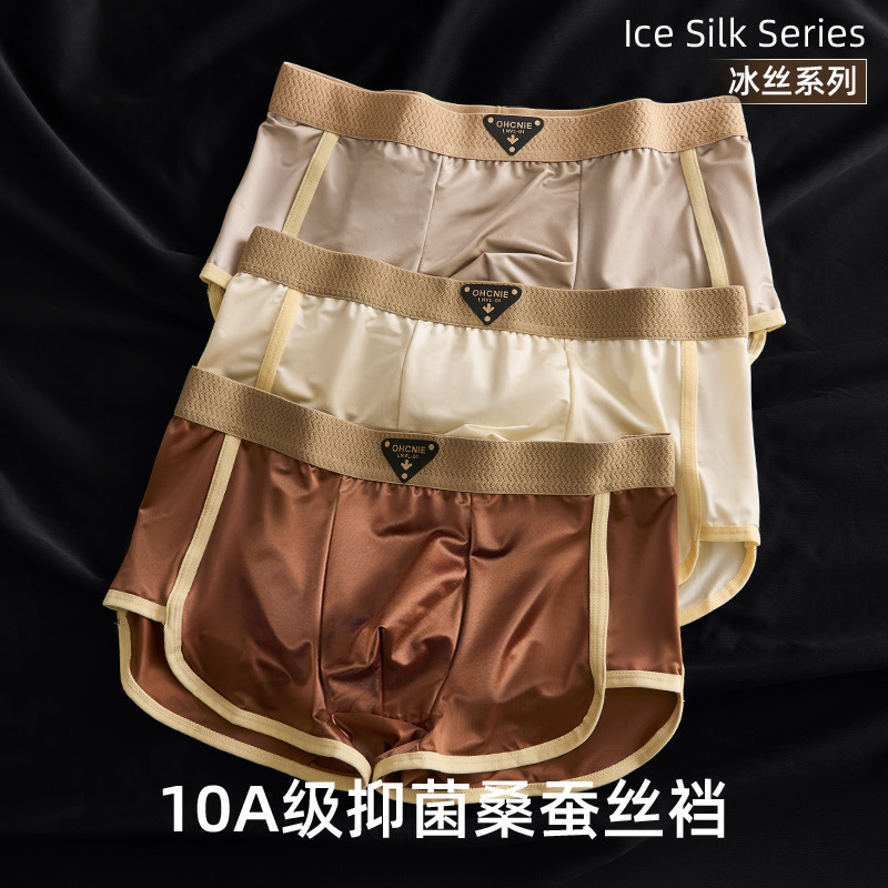 10A 抗菌マルベリーシルクメンズ下着アイスシルクナイロンサテン下着ゆったり通気性のあるハイエンドメンズボクサーブリーフ