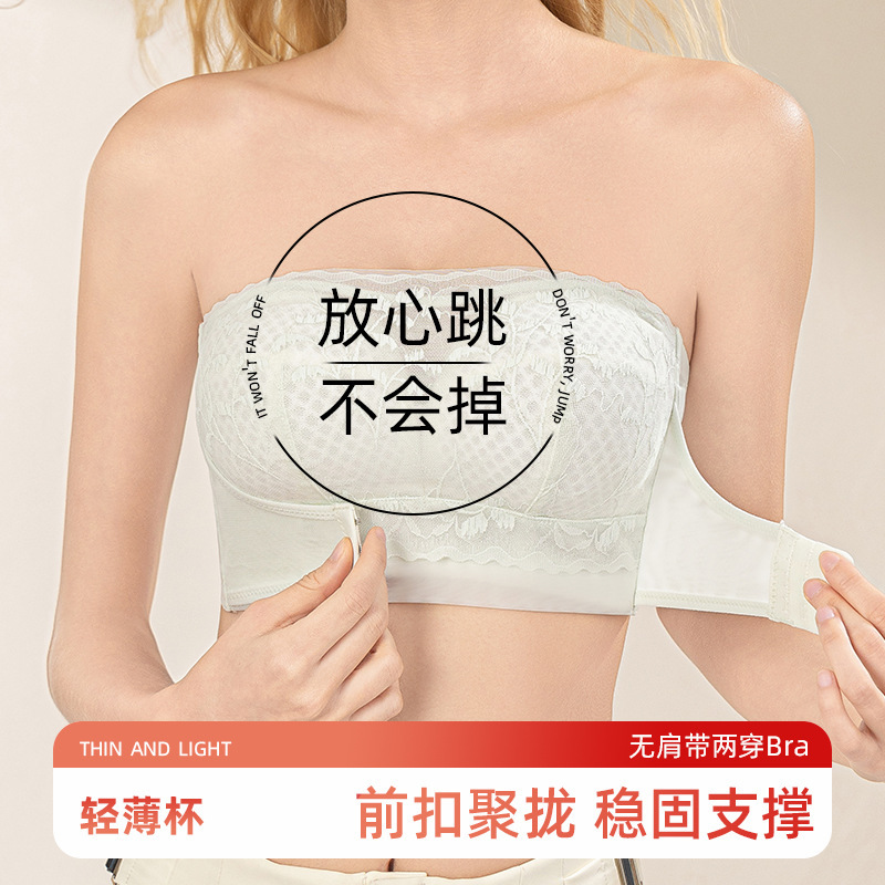 2025 春夏 フロントボタン 大きいサイズ ストラップレス 下着 女性用 大きい胸 小胸 プッシュアップ 滑り止め オフショルダー 落下防止 薄いチューブトップ