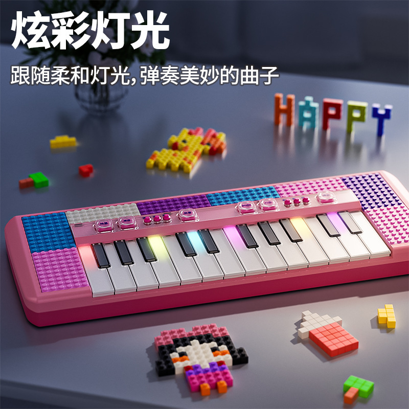 新しい Bluetooth 再生可能なギフトレインボーライト電子キーボード挿入おもちゃ教育ビルディングブロック多機能電子キーボード