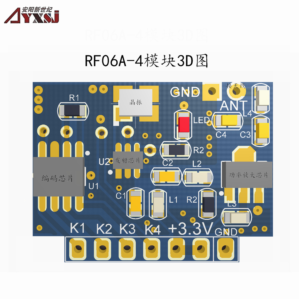 1527コード4路低消費電力小体積遠距離ばねアンテナ433m無線送信モジュールF06A-4