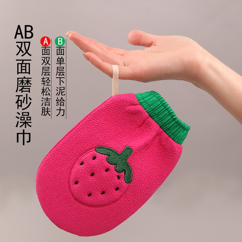タオルパイかわいいイチゴバスタオル中細砂強力な除染大人の家庭用両面スクラブバスタオル卸売