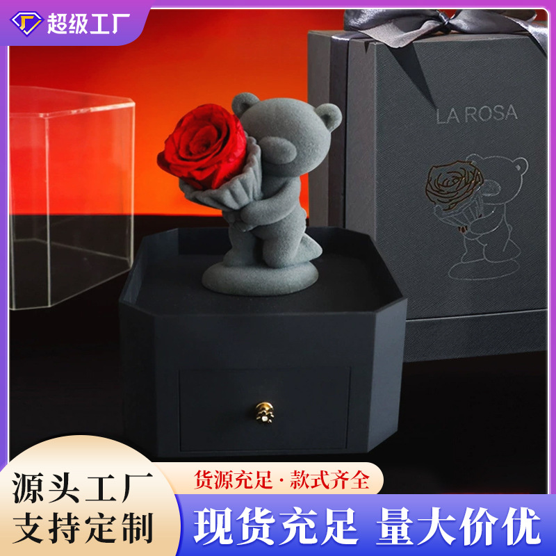 プリザーブドフラワーベア ローズジュエリーボックス 植毛プリザーブドフラワー告白ベア アクリル高級ネックレスギフトボックス