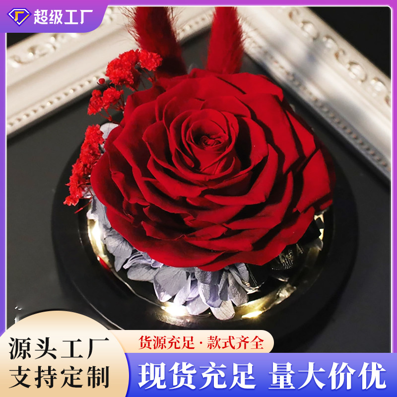 国境を越えた永遠の花ガラスカバー付き本物のバラ誕生日プレゼント女性向け高級プリザーブドフラワー七夕節ギフト
