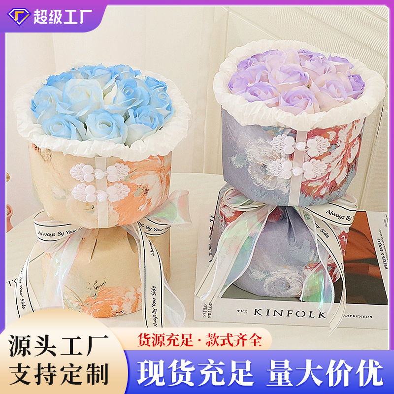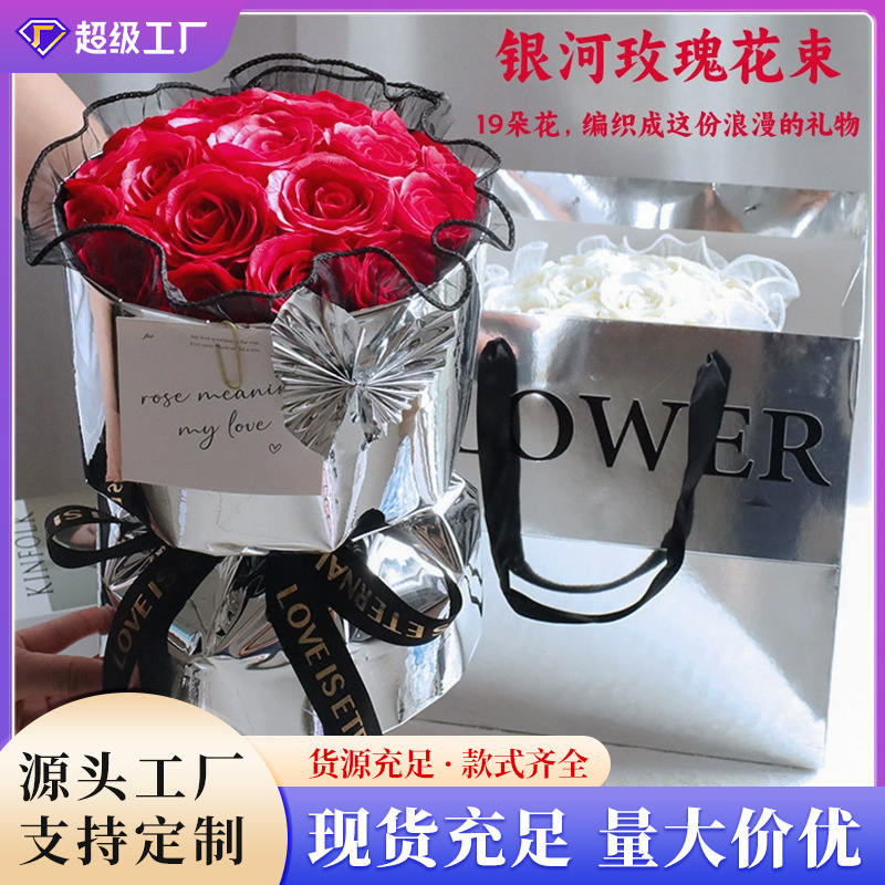 七夕節に彼女に贈る99本のバラの花束、石鹸の花、プロポーズ、告白、造花の手持ち花束、造花の星の花