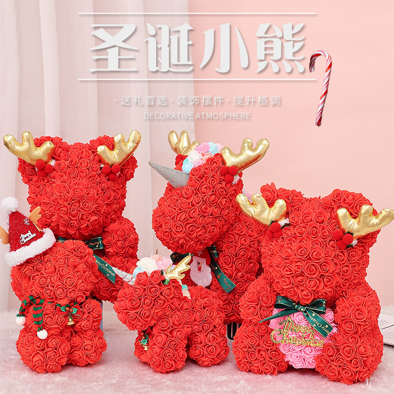 永生花薔薇熊が子供にクリスマスプレゼントユニコーンPEクリエイティブシミュレーション泡花熊飾り