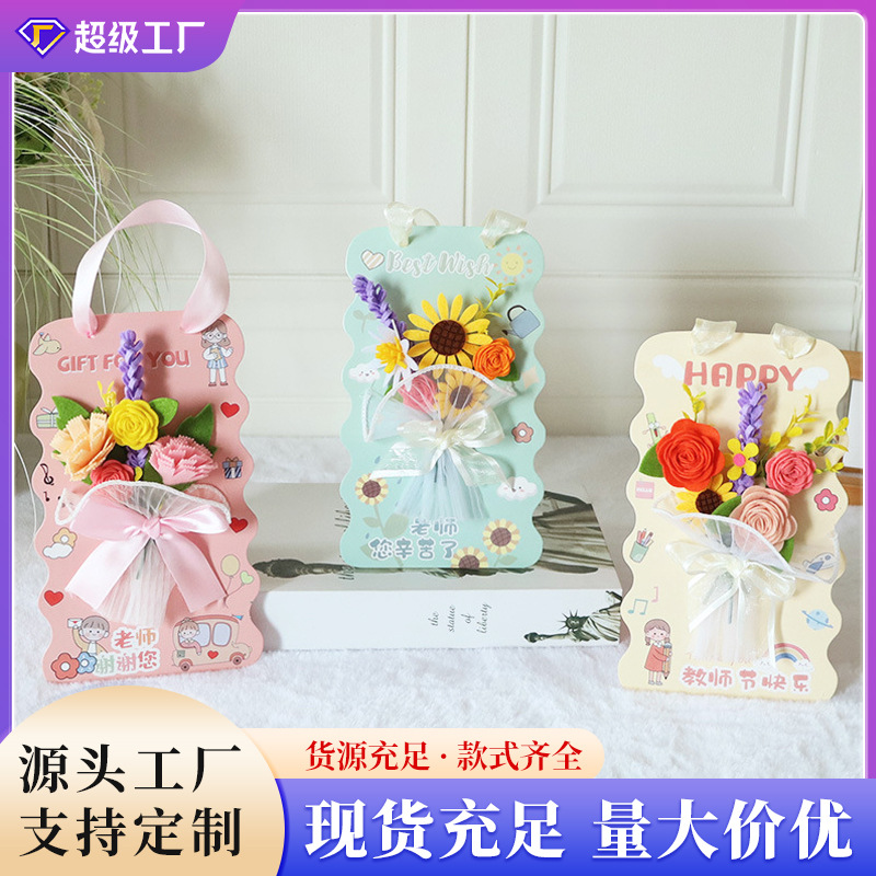 教師の日のプレゼントの立体グリーティングカードひまわりの花束フェルトの感謝カードは先生にアイデアを送ってdiyカードを祝福します。
