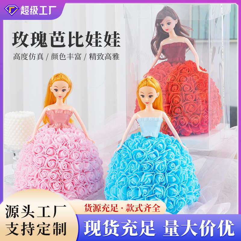 欧米のクリスマスのバレンタインデーの贈り物の告白のバービー人形の王女の泡のバラの花の王女の人形のバラの熊
